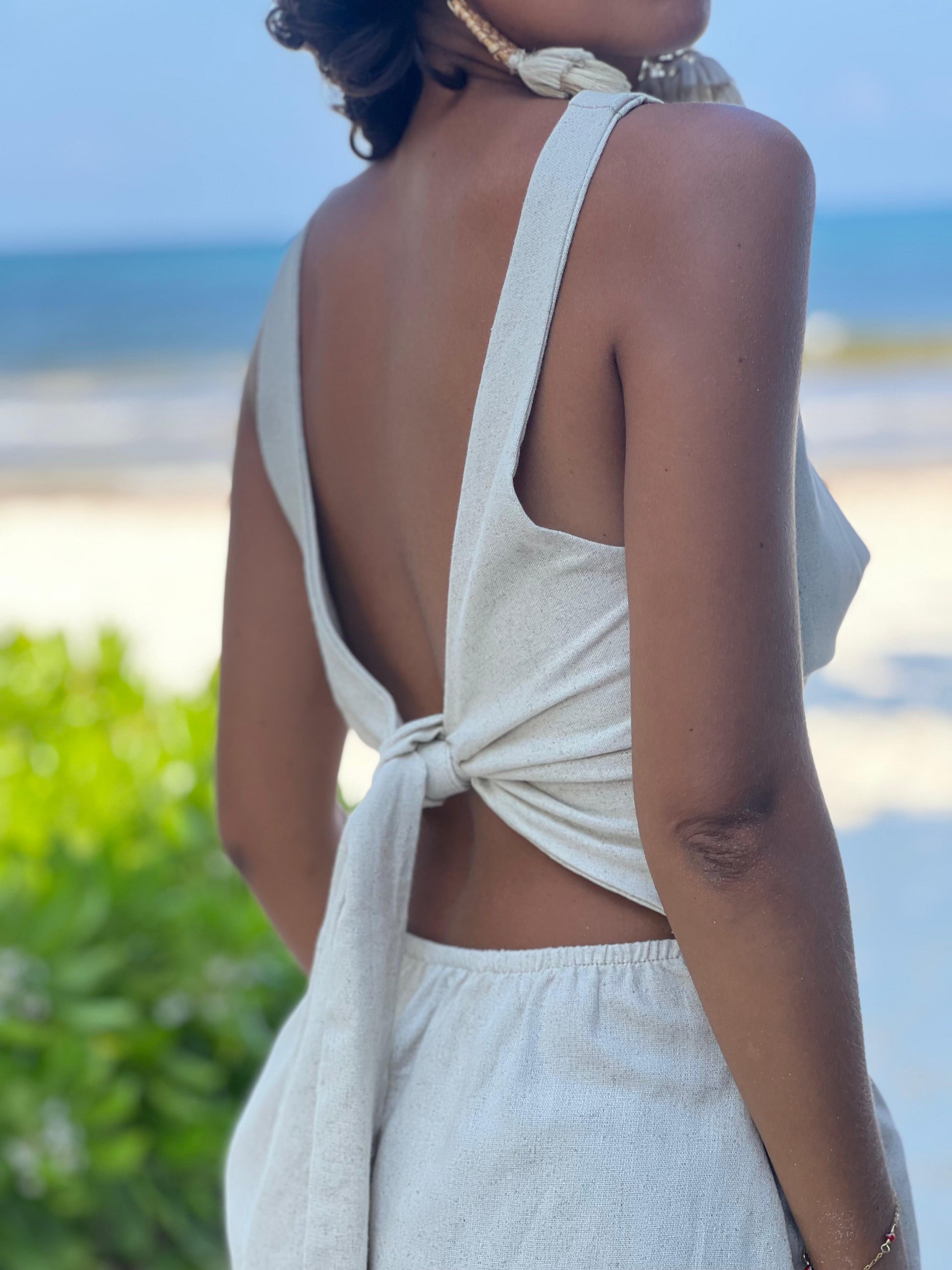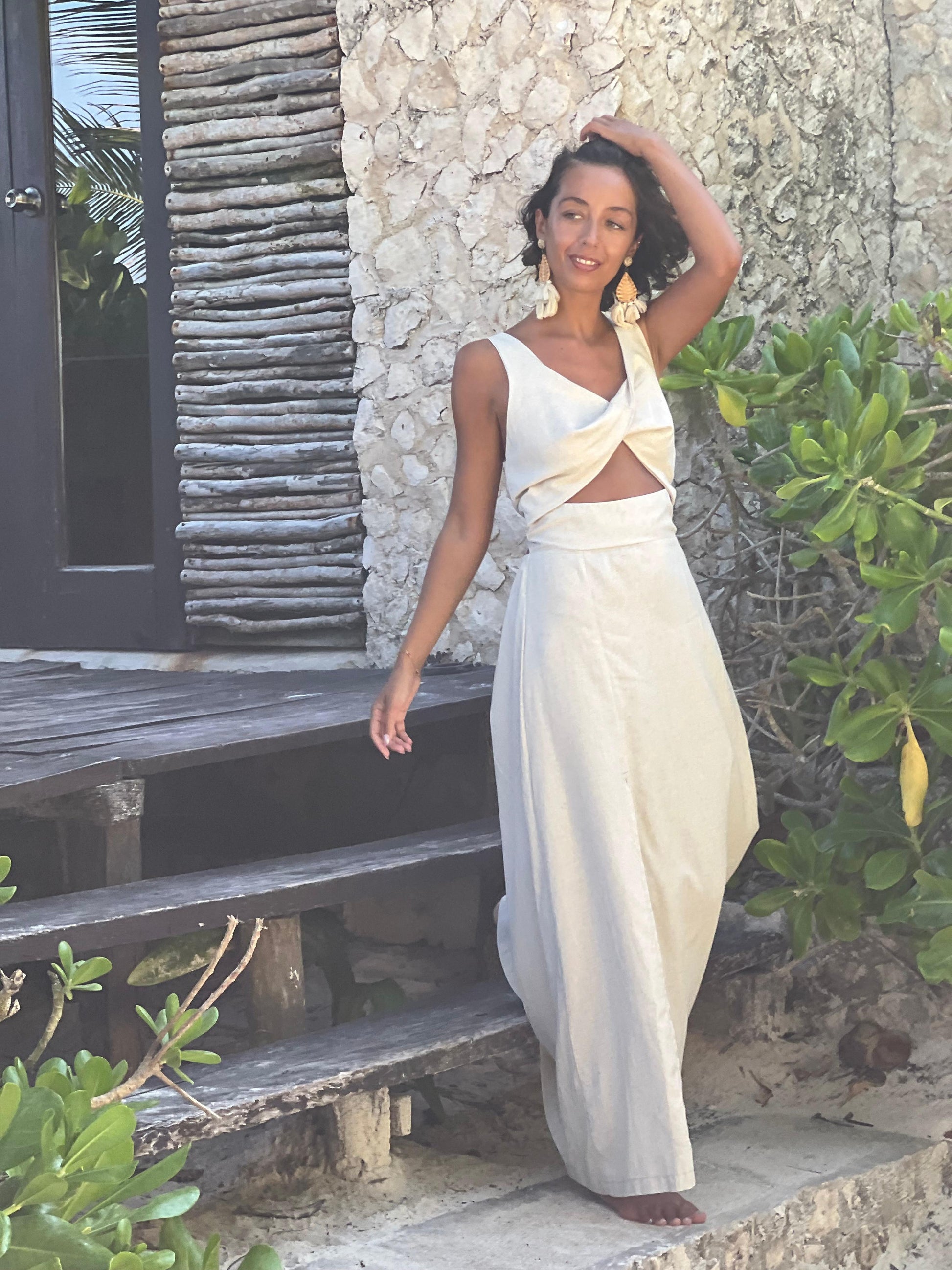 El vestido Dakota es un vestido muy cómodo, confeccionado en lino crudo natural que le da un aire fresco, femenino y versátil para disfrutarlo en diferentes ocasiones.