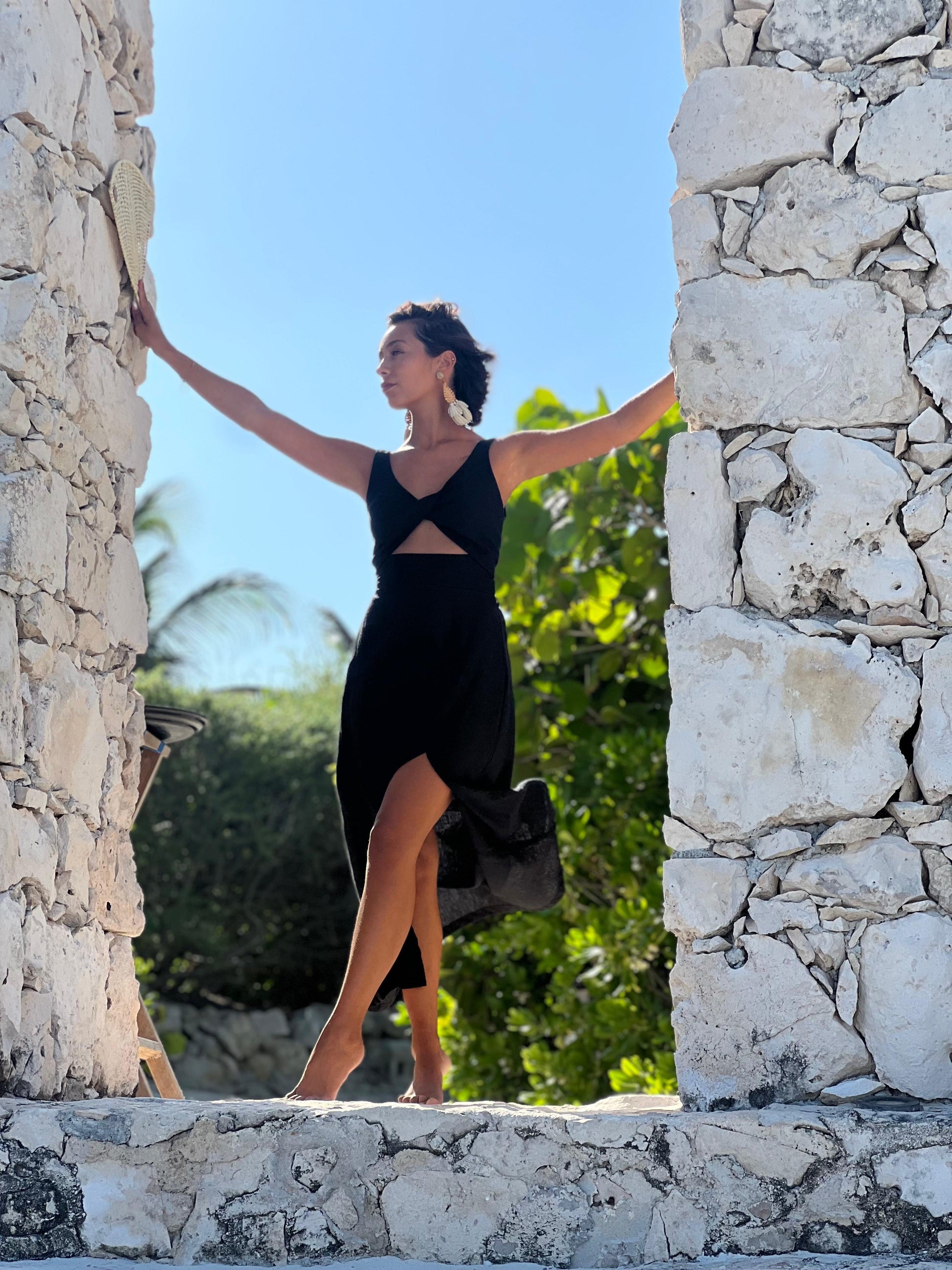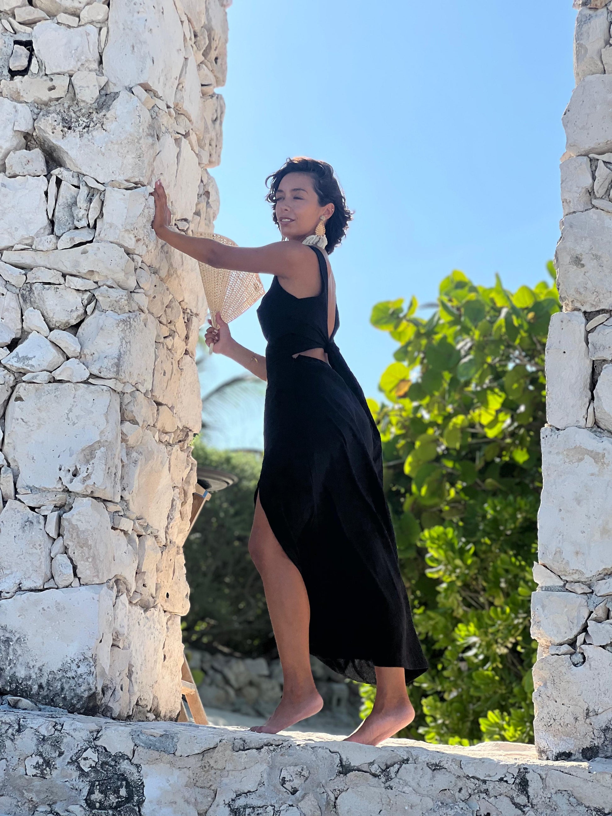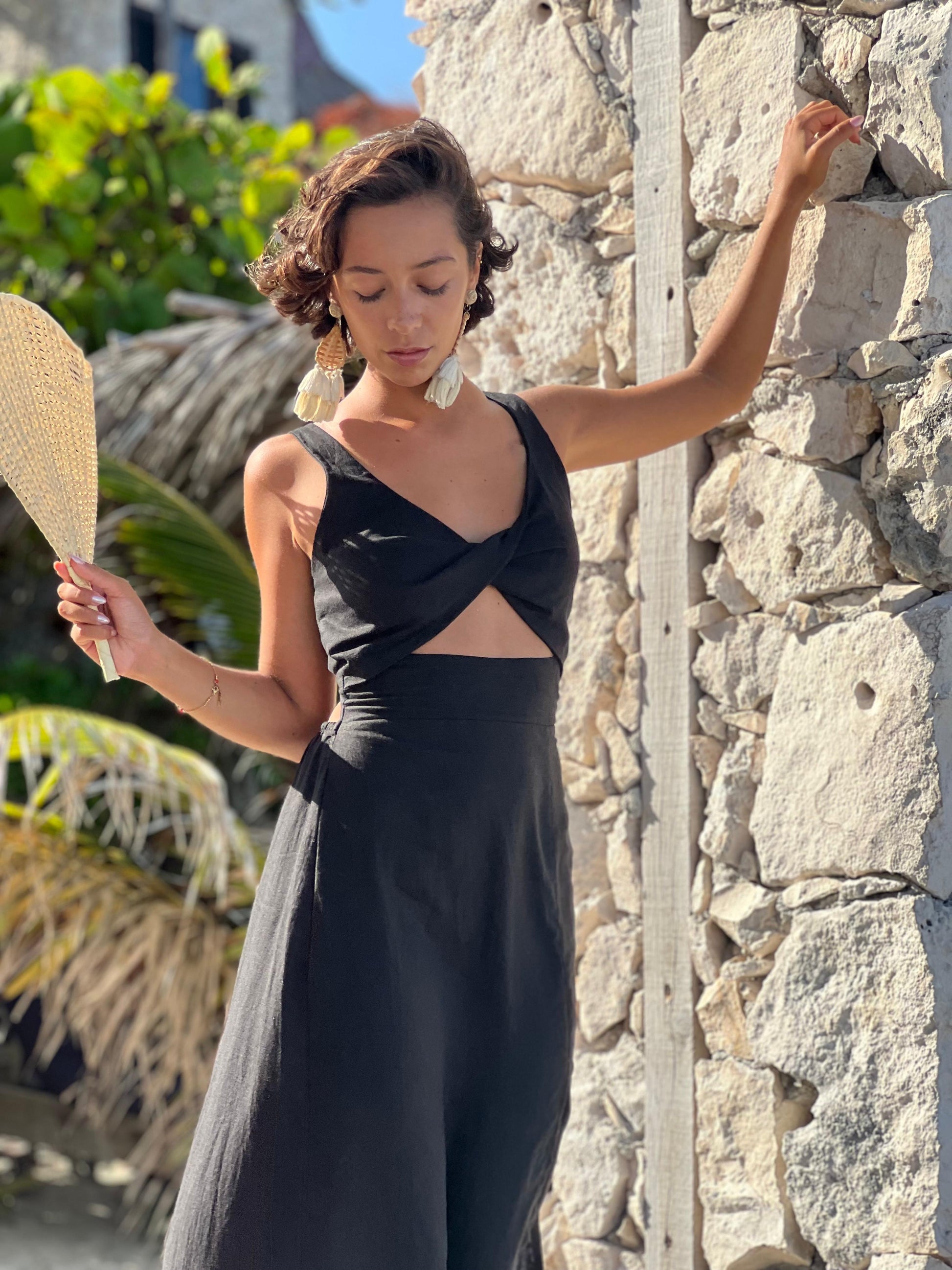El vestido Dakota es un vestido muy cómodo, y ajustable. Confeccionado en lino negro que le da un toque sofisticado, femenino y versátil para disfrutarlo en diferentes ocasiones.